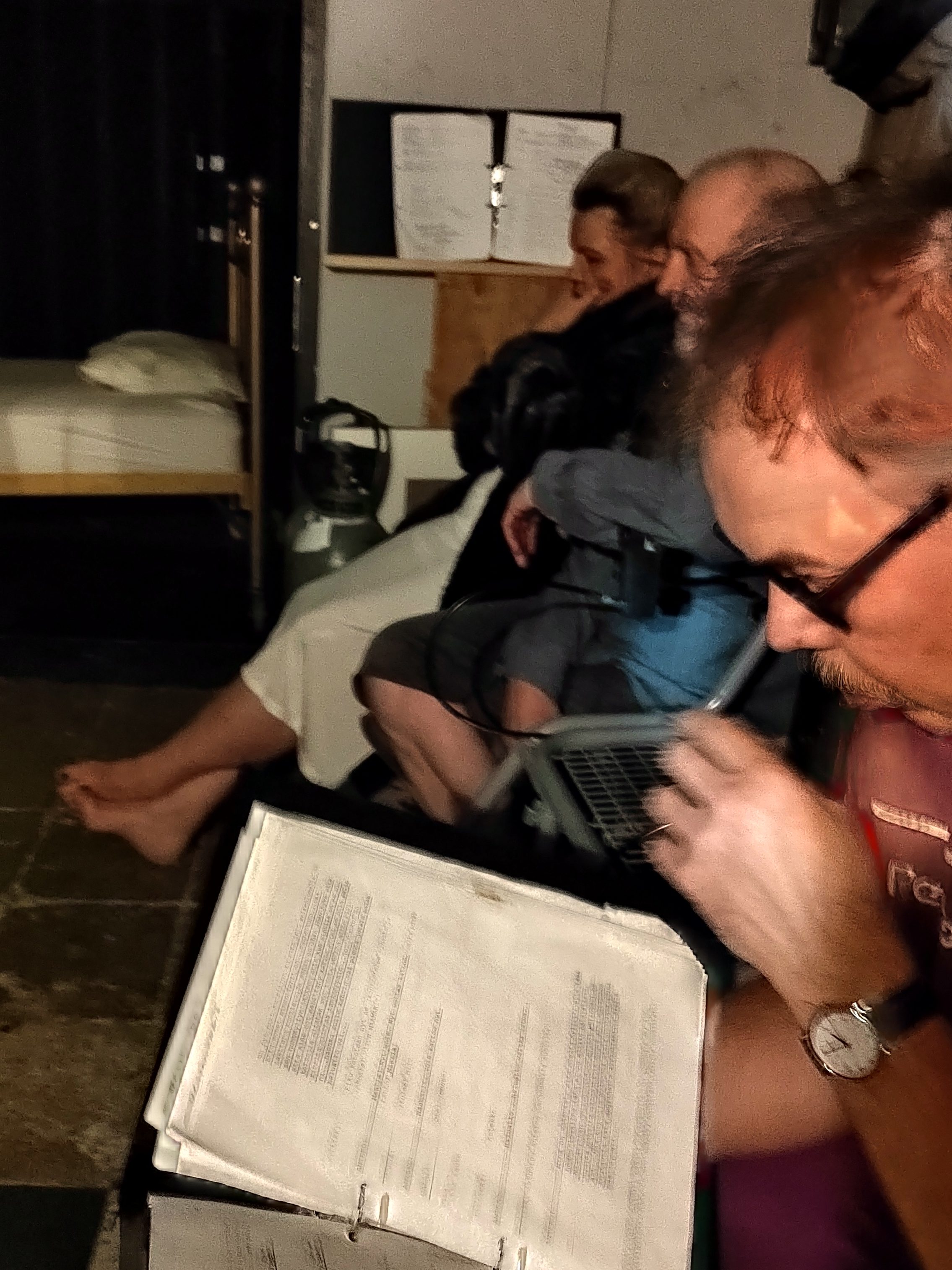 Alun rooliviilausten jälkeen työryhmän näyttelijöiksi vakiintuivat Katja Pihlaja, Jari Määttä, Esa ”Ekke” Valkila, Paula Äijänen, Esperanza ”Espe” Parkkinen ja Teemu Kalliokoski (vuoden 2024 esityksissä Teemua paikkasi Petteri Olkinuora). Jo ensimmäisessä lukutreenissä huomio kiinnittyi esitysteknisesti vaativiin ”tilanteisiin” ja opeteltavan tekstimassan määrään.