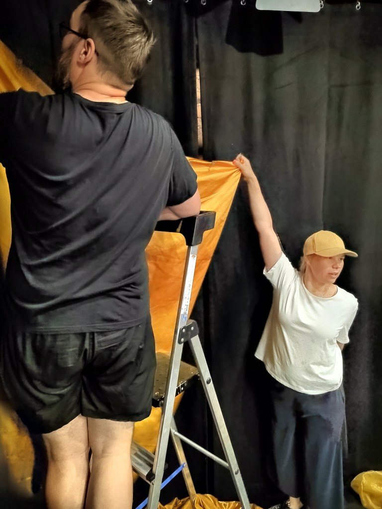 Erityisesti mieleeni jäänee Teatteri Telakan esitykset, sillä katsomon sivusta pystyi seuraamaan muiden tekemistä ”kuin katsojana.” Voin vain todeta, että olen päässyt jälleen tekemään teatteria suvereenien ja lahjakkaiden ihmisten kanssa.
