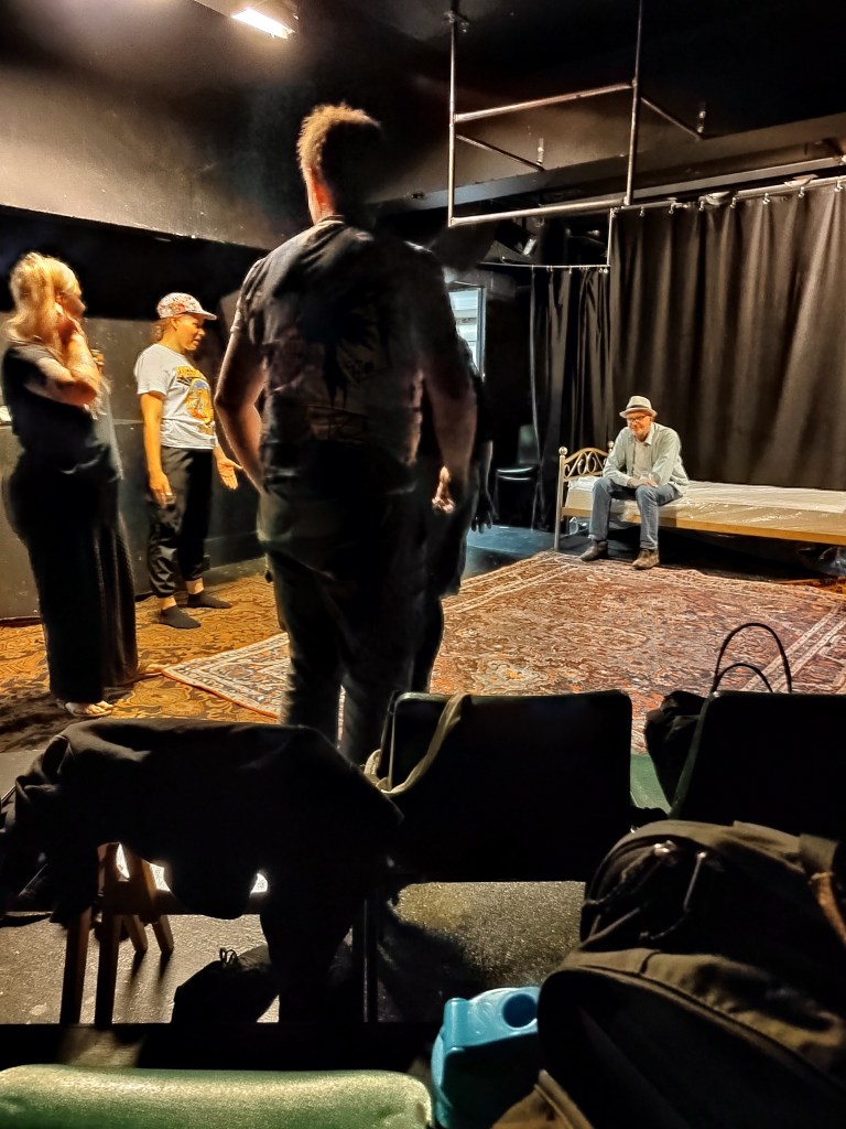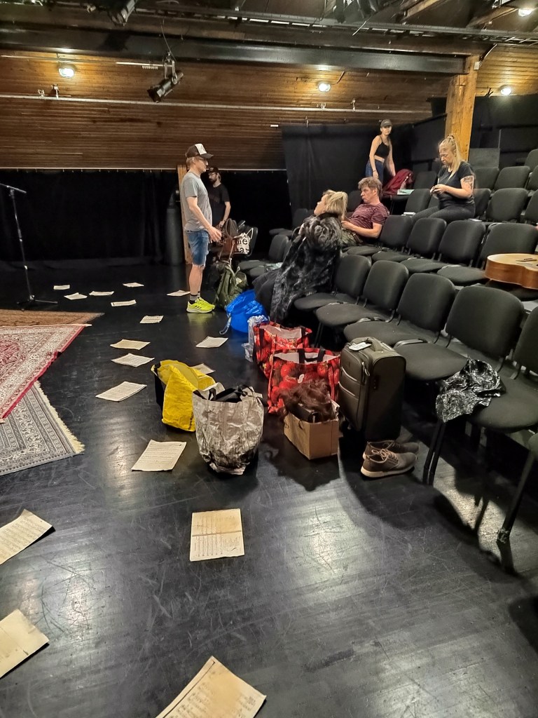 Katja ja Teemu olivat tuttuja jo Pasista, joten laskeutuminen projektin vietäväksi tuntui kuin paluulta johonkin vanhaan, tuttuun ja turvalliseen. Jarin työskentelyä olin nähnyt aiemmin Huoneteatterilla näytelmässä Puhdistus, jonka uudelleenlämmittelyä minun oli suuri onni päästä näkemään ja Paulan mukaansa tempaavan vedon olin käynyt katsomassa eturivistä Naissaaren näyttämön Reviisorissa.